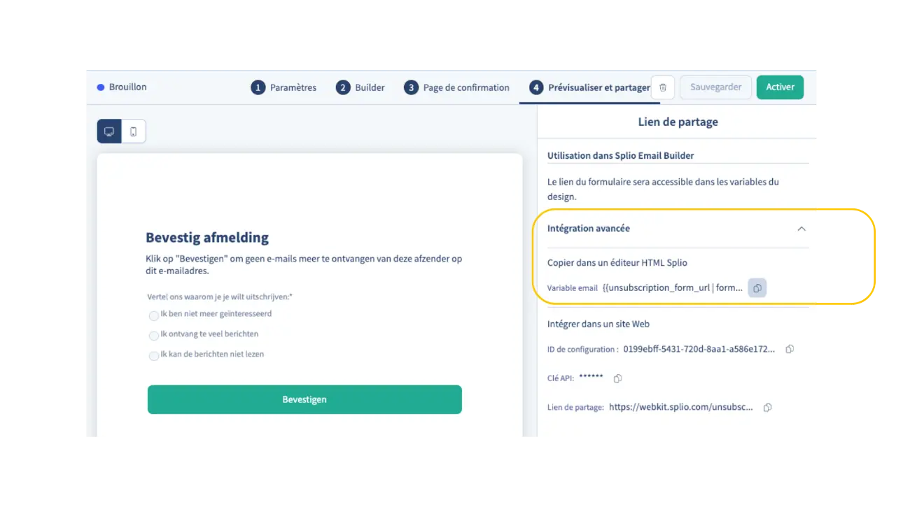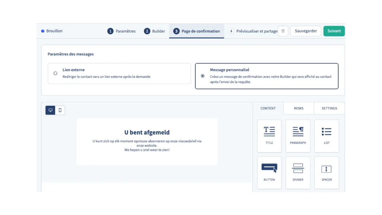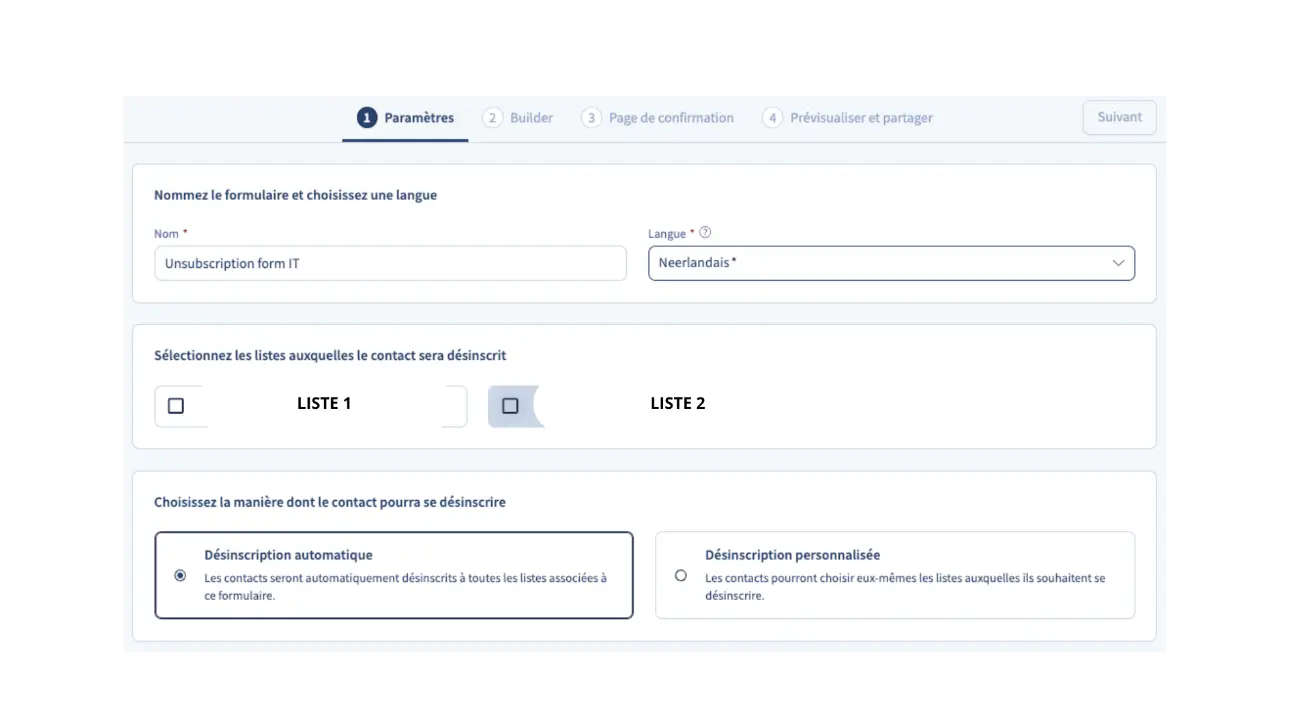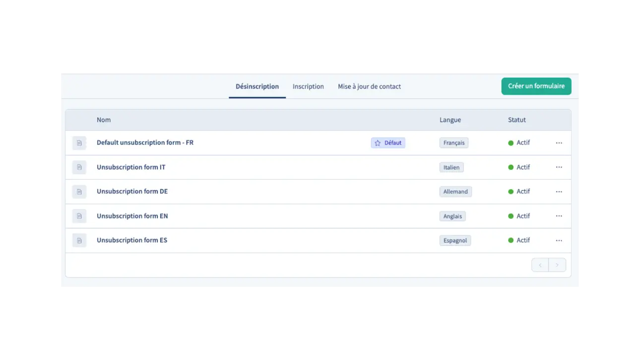 La nouvelle expérience vous permet de personnaliser les formulaires de désabonnement avec notamment un affichage par langue.